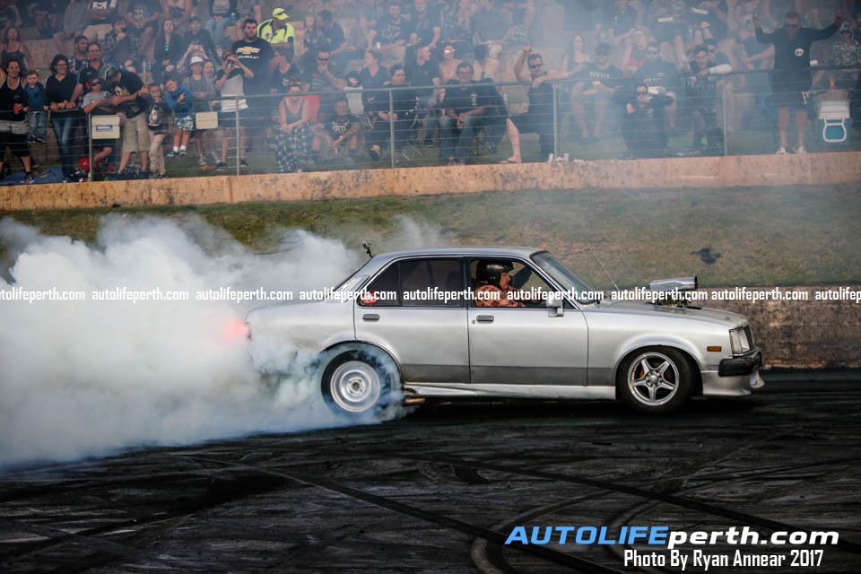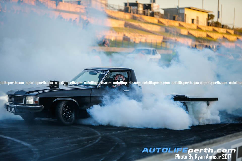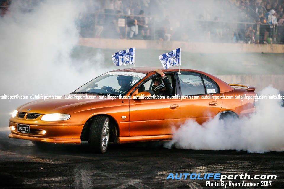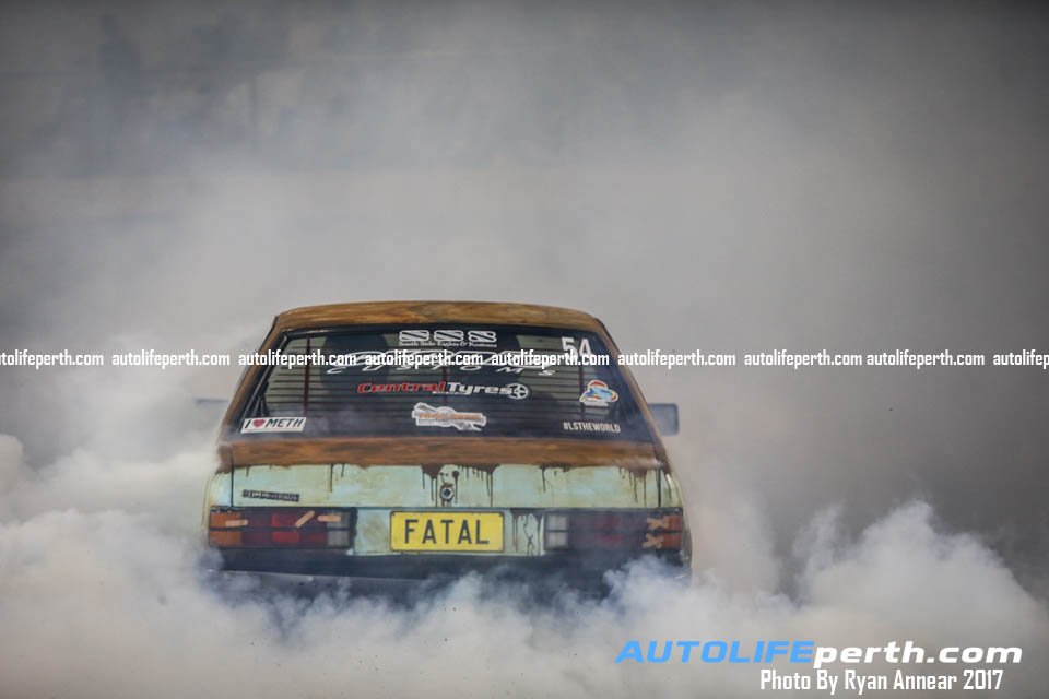 Another tyre smashing event this month was the Perth motorplexs ‘ Burnout Boss ‘ , plenty of open class action leading into blown burnout carnage !